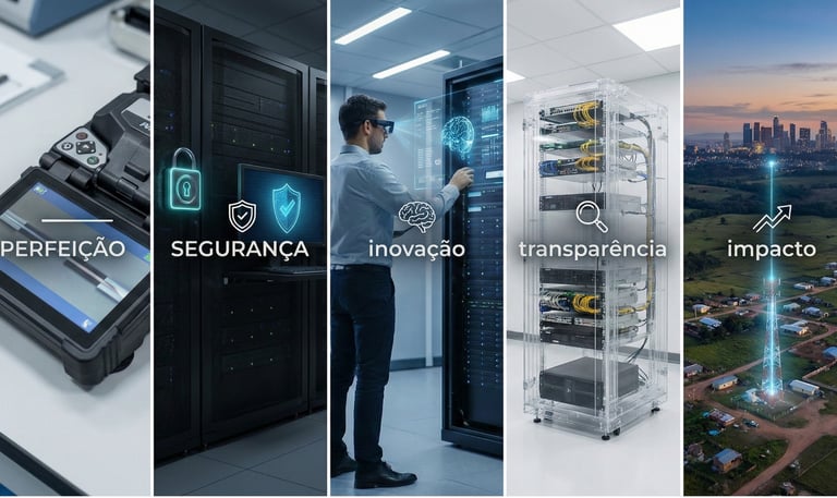 Contamos com uma estrutura operacional preparada para atender com rapidez e precisão. Nossa equipe atua com veículos equipados para deslocamento ágil e suporte imediato, além de ferramentas profissionais para instalação, manutenção, fusão de fibra e testes de qualidade.